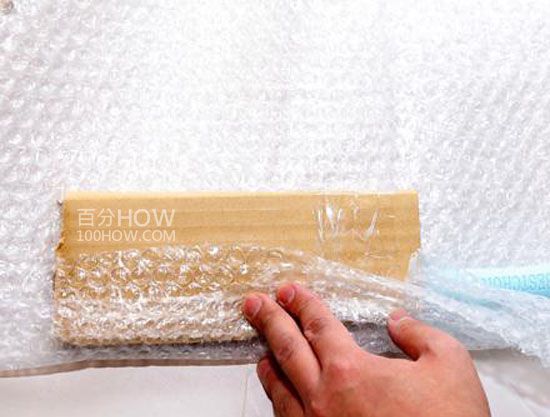 c、最后用氣泡布包好菜刀的瓦楞紙再次包裹即可。